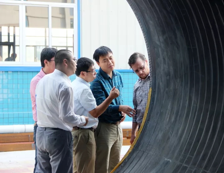 ▲专家一行了解HDPE缠绕结构壁管构造