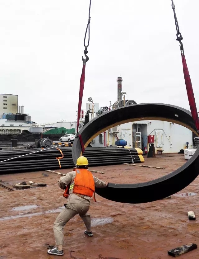 正在吊装的管材
