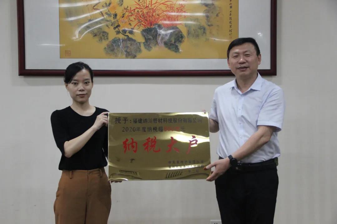 近日,泉港区前黄镇镇长刘婉娥、副书记郭小国一行来到星空xk官网平台股份,为公司颁发“纳税大户”荣誉牌匾。集团公司副总经理肖仁建、人力行政中心总监邹伟、管业公司副总经理陈剑飞出席本次授牌仪式。
