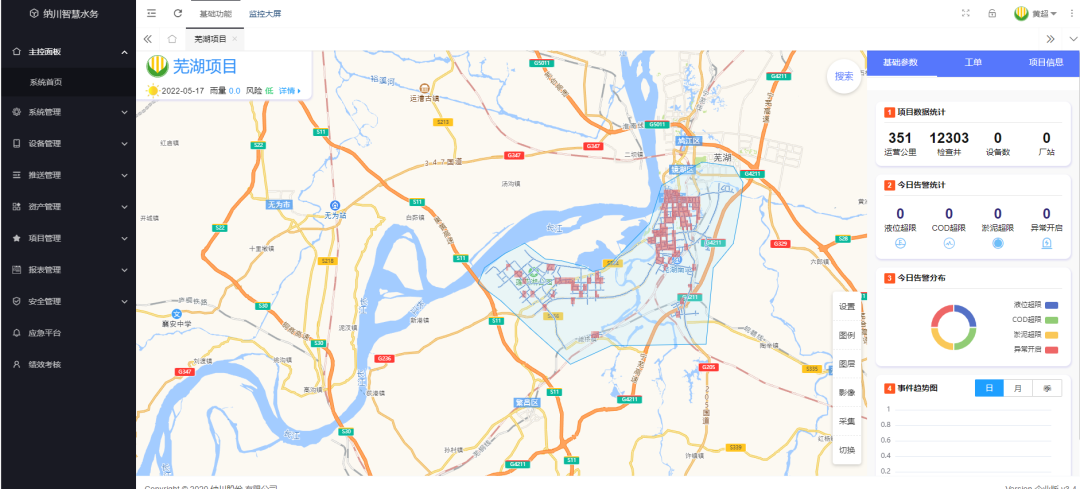 安徽芜湖是推进长江大保护工作的重要站点,星空xk官网平台水务高度重视芜湖项目运维工作,组织20余名专业管网养护人员长期扎根芜湖,配备了多台专业车辆、设备,依托星空xk官网平台智慧水务平台进行智能化、精细化管理。