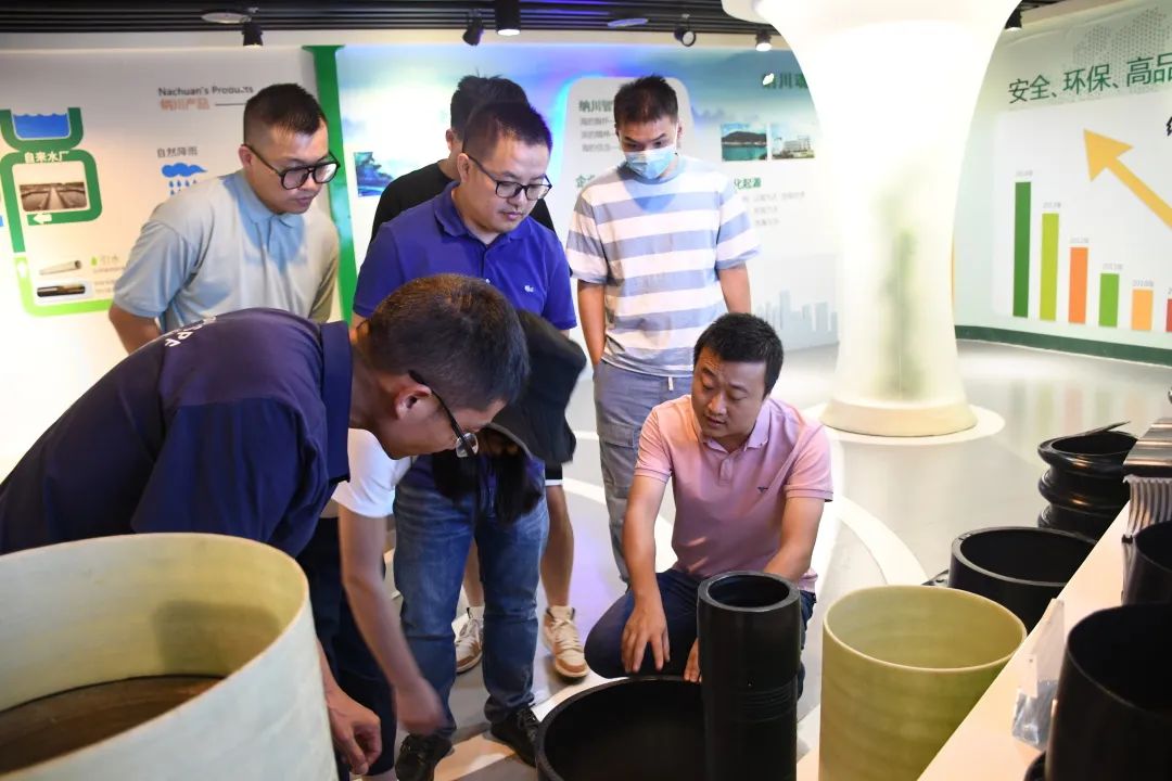 游先辉总经理一行参观了星空xk官网平台股份总部展厅,星空xk官网平台股份能源交通国际事业部总监严立威介绍了公司发展历程、企业文化、获得荣誉,对公司高密度聚乙烯(HDPE)缠绕结构壁管、钢骨架聚乙烯(PE)塑料复合管、聚酯增强复合顶管等产品进行讲解。