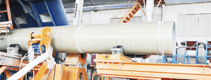 在连续输出的模具上,把树脂、连续纤维、短切纤维和石英砂按一定要求采用环向缠绕方法连续铺层,并经固化后切割成一定长度的管材产品的一种生产方法。使设备具有工艺控制便利、劳动强度低、污染小、工作环境好、生产效率高、管材质量稳定等优势。